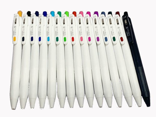 - デザインが白基調でシンプルで、ノック部やクリップでインク色がわかる。